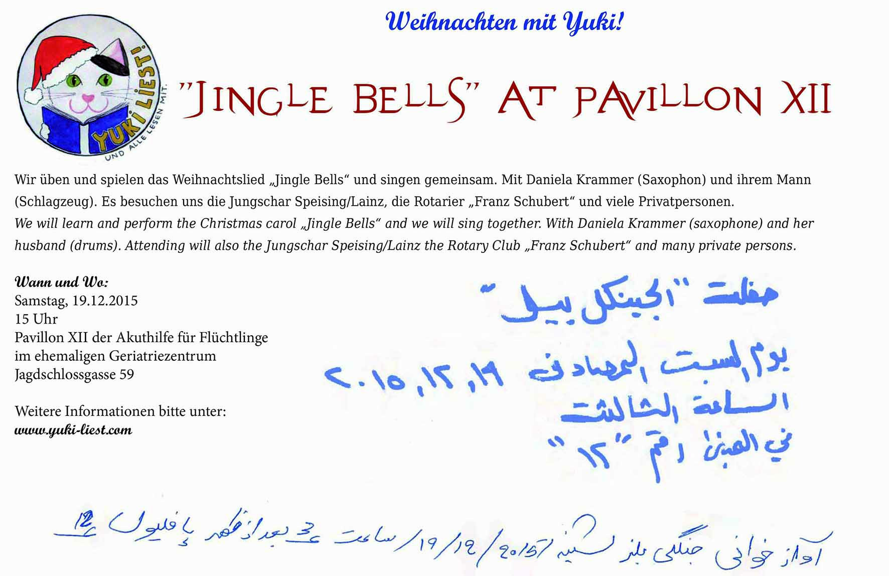 We will learn and perform the Christmas carol „Jingle Bells“ and we will sing together. With Daniela Krammer (saxophone) and her husband (drums). Attending will also the Jungschar Speising/Lainz the Rotary Club „Franz Schubert“ and many private persons.